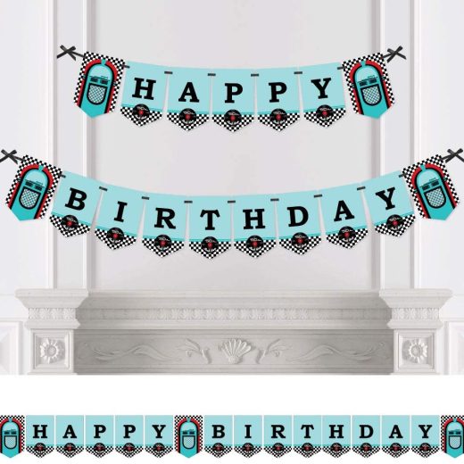 Big Dot of Happiness 50s Sock Hop – 1950s Rock N Roll Birthday Party Bunting Banner – Birthday Party Decorations – Happy Birthday