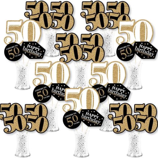 Big Dot of Happiness Adult 50th Birthday – Gold – Birthday Party Centerpiece Sticks – Showstopper Table Toppers – 35 Pieces