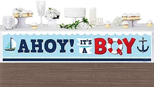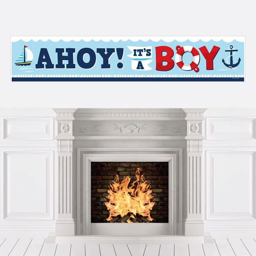 Big Dot of Happiness Ahoy Itu2019s a Boy – Nautical Baby Shower Decorations Party Banner