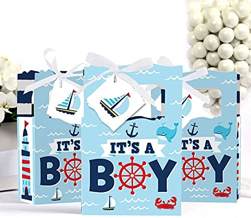 Big Dot of Happiness Ahoy Itu2019s a Boy – Nautical Baby Shower Favor Boxes – Set of 12