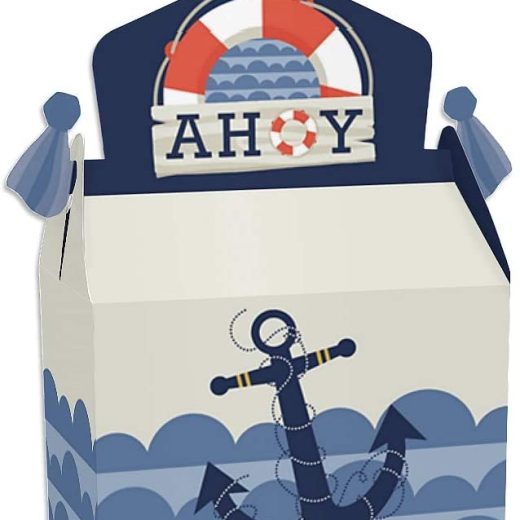 Gable Boxes INCLUDE: 12 Ahoy – Nautical-themed goodie party favor boxes. Each box SIZE measures 4.25 inches length x 3 inches width x 7.75 inches h…