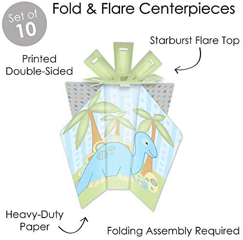 Big Dot of Happiness Baby Boy Dinosaur – Table Decorations – Baby Shower or Birthday Party Fold and Flare Centerpieces – 10 Count