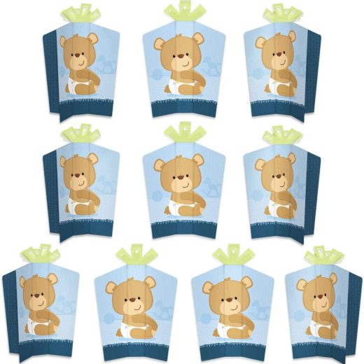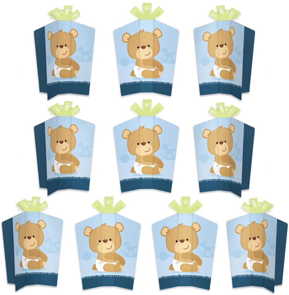 Big Dot of Happiness Baby Boy Teddy Bear – Table Decorations – Baby Shower Fold and Flare Centerpieces – 10 Count