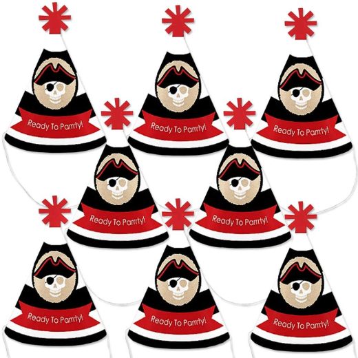Big Dot of Happiness Beware of Pirates – Mini Cone Pirate Birthday Party Hats – Small Little Party Hats – Set of 8