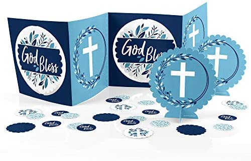 Big Dot of Happiness Blue Elegant Cross – Boy Religious Party Centerpiece and Table Decoration Kit