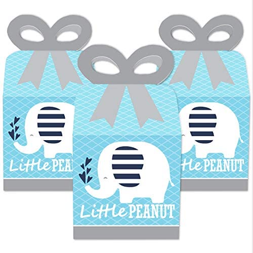 Big Dot of Happiness Blue Elephant – Square Favor Gift Boxes – Boy Baby Shower or Birthday Party Bow Boxes – Set of 12