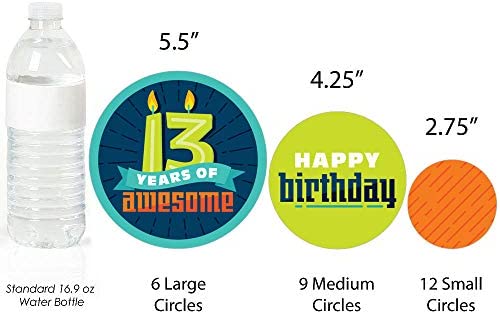Boy 13th Birthday Giant Circle Confetti INCLUDES 27 large official teenager birthday party confetti. Boy 13th Birthday decorations are perfect for a thirteenth birthday party. Boy 13th Birthday giant circle confetti SIZE 5.5 inches large circles, six qty; 4.25 inches medium circles, nine qty; and 2.75 inches small circles, twelve qty. The unique design and large size makes this teen party decorations an impressive addition to any birthday party. EASY TABLE DECOR: Boy 13th Birthday giant circle confetti comes in a variety of coordinating patterns in three different sizes. Scatter them down the length of your party tables, add them to centerpieces or hole-punch them and string together as a birthday party banner. 13 years of being awesome paper confetti pieces will make a statement however you choose to use them. PREMIUM PARTY SUPPLIES: Boy 13th Birthday giant circle confetti are professionally printed on heavy-duty cardstock paper with a photo-like shine. They are individually inspected and carefully packaged by hand. Giant table confetti will arrive flat. Get creative with your DIY party ideas! MADE IN THE USA: Boy 13th Birthday – Official Teenager Birthday Party Giant Circle Confetti is designed and manufactured at our Wisconsin facility using materials that are Made in America.