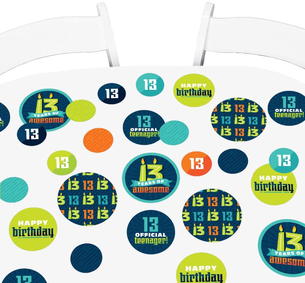 Big Dot of Happiness Boy 13th Birthday – Official Teenager Birthday Party Giant Circle Confetti – Party Decorations – Large Confetti 27 Count