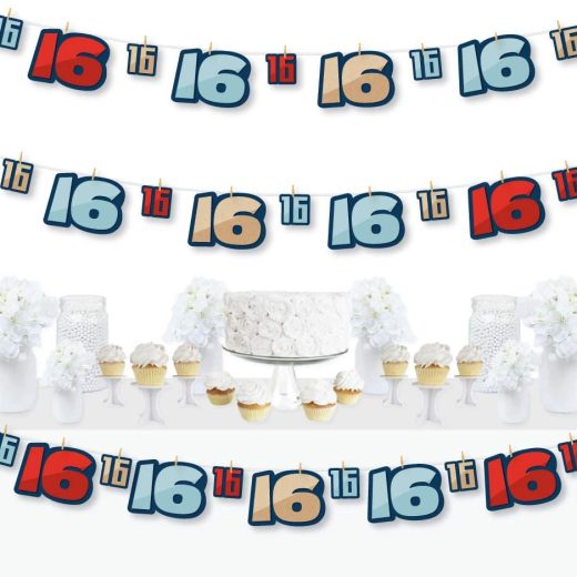 Big Dot of Happiness Boy 16th Birthday – Sweet Sixteen Birthday Party DIY Decorations – Clothespin Garland Banner – 44 Pieces