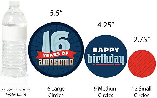 Boy 16th Birthday Giant Circle Confetti INCLUDES 27 large sweet sixteen birthday party confetti. Boy 16th Birthday decorations are perfect for a sixteenth birthday party. Boy 16th Birthday giant circle confetti SIZE 5.5 inches large circles, six qty; 4.25 inches medium circles, nine qty; and 2.75 inches small circles, twelve qty. The unique design and large size makes this boy sweet 16 party decorations an impressive addition to any birthday party. EASY TABLE DECOR: Boy 16th Birthday giant circle confetti comes in a variety of coordinating patterns in three different sizes. Scatter them down the length of your party tables, add them to centerpieces or hole-punch them and string together as a birthday party banner. 16 years of being awesome paper confetti pieces will make a statement however you choose to use them. PREMIUM PARTY SUPPLIES: Boy 16th Birthday giant circle confetti are professionally printed on heavy-duty cardstock paper with a photo-like shine. They are individually inspected and carefully packaged by hand. Giant table confetti will arrive flat. Get creative with your DIY party ideas! MADE IN THE USA: Boy 16th Birthday – Sweet Sixteen Birthday Party Giant Circle Confetti is designed and manufactured at our Wisconsin facility using materials that are Made in America.