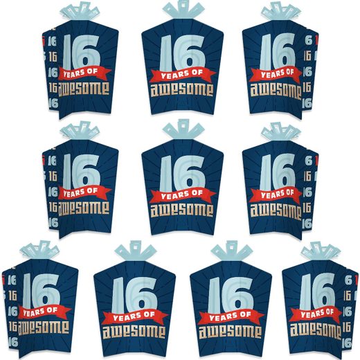 Big Dot of Happiness Boy 16th Birthday – Table Decorations – Sweet Sixteen Birthday Party Fold and Flare Centerpieces – 10 Count