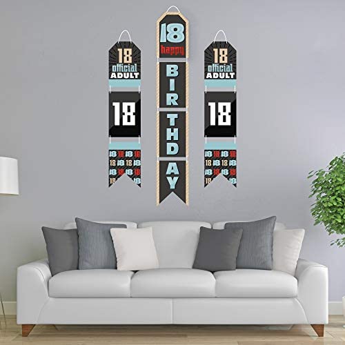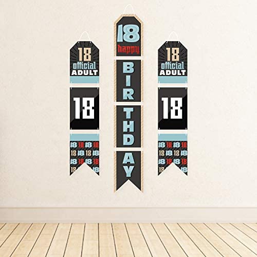 Big Dot of Happiness Boy 18th Birthday – Hanging Vertical Paper Door Banners – Eighteenth Birthday Party Wall Decoration Kit – Indoor Door Decor