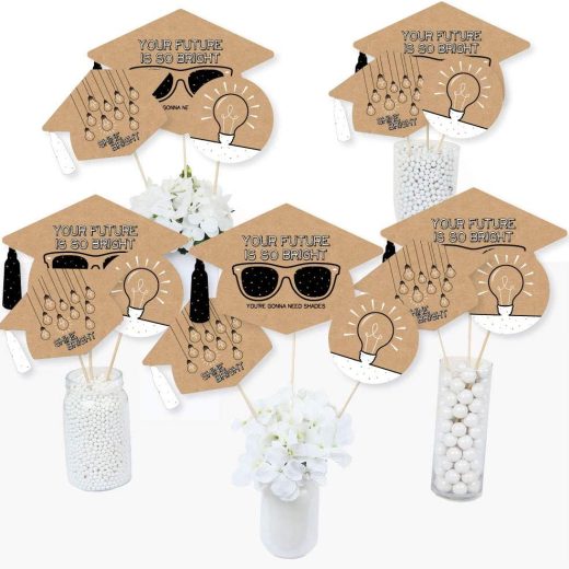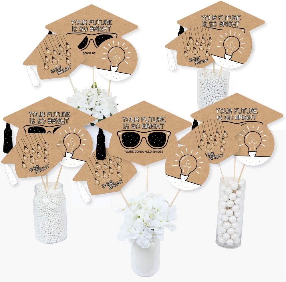 Big Dot of Happiness Bright Future – Graduation Party Centerpiece Sticks – Table Toppers – Set of 15