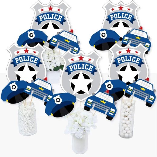 Big Dot of Happiness Calling All Units – Police – Cop Birthday Party or Baby Shower Centerpiece Sticks – Table Toppers – Set of 15