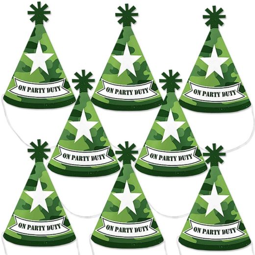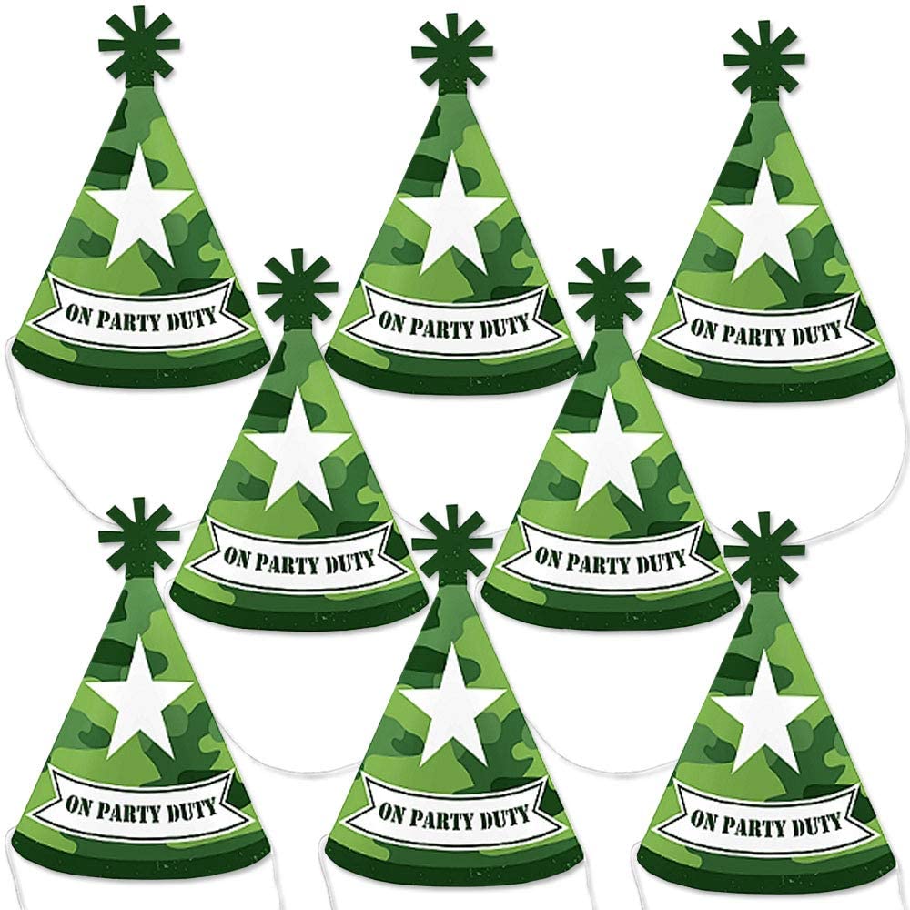 Big Dot of Happiness Camo Hero – Mini Cone Army Military Camouflage Party Hats – Small Little Party Hats – Set of 8