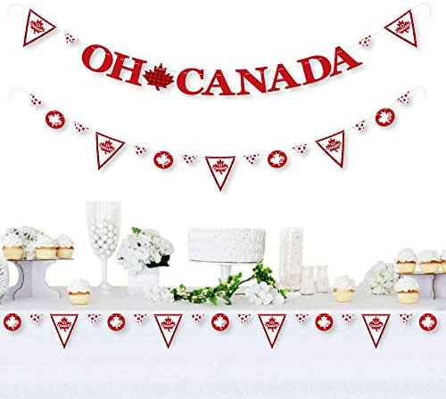 Big Dot of Happiness Canada Day – Canadian Party Letter Banner Decoration – 36 Banner Cutouts and Oh Canada Banner Letters