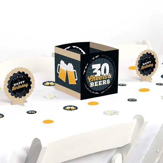 Cheers and Beers to 30 Years Table Decoration Kit INCLUDES 1 large 30 centerpiece, 2 scalloped centerpieces, 12 scalloped table confetti pieces and…