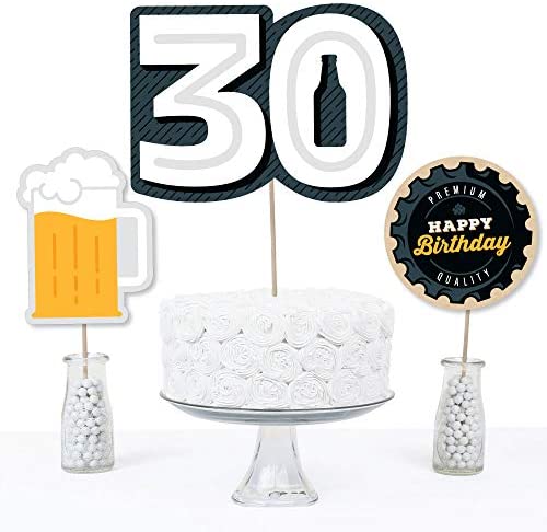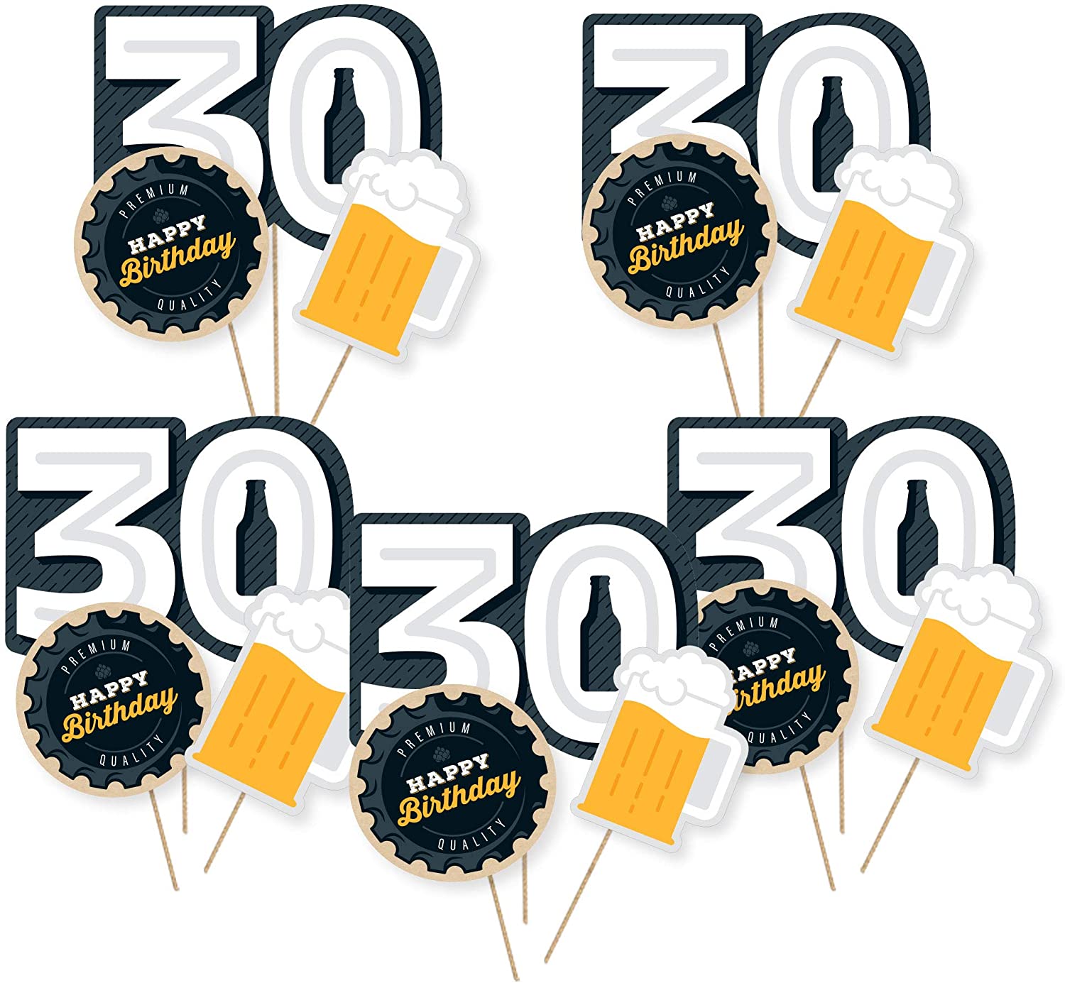 Big Dot of Happiness Cheers and Beers to 30 Years – 30th Birthday Party Centerpiece Sticks – Table Toppers – Set of 15