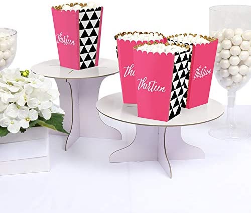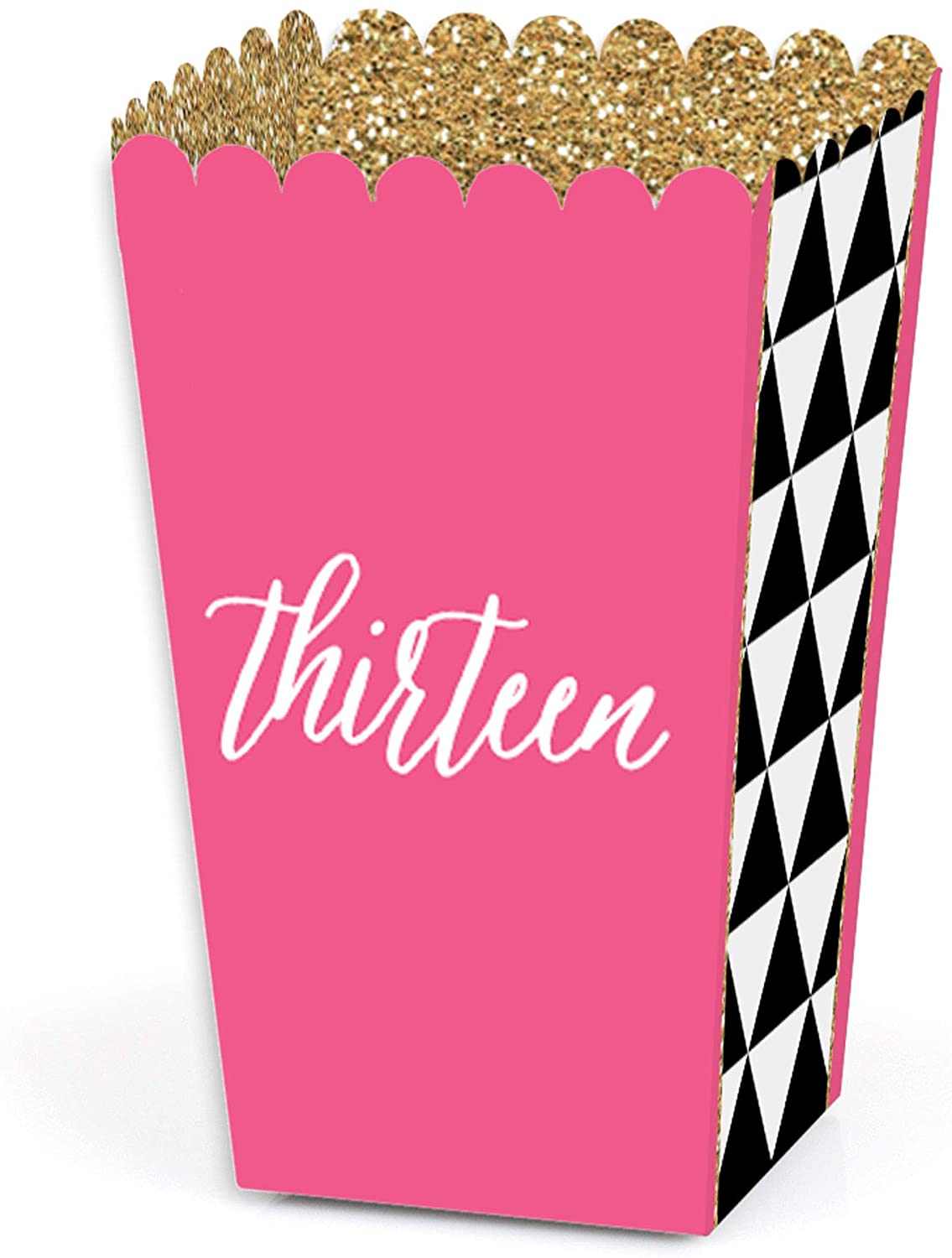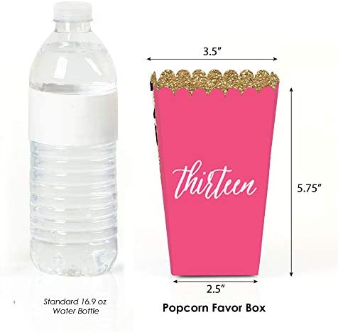 Big Dot of Happiness Chic 13th Birthday – Pink, Black and Gold – Birthday Party Favor Popcorn Treat Boxes – Set of 12