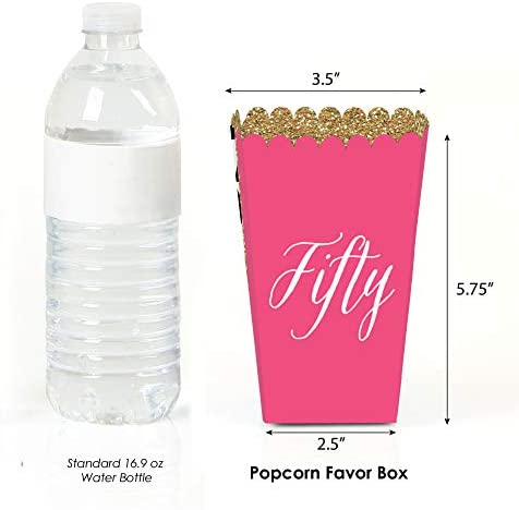 Big Dot of Happiness Chic 50th Birthday – Pink, Black and Gold – Birthday Party Favor Popcorn Treat Boxes – Set of 12