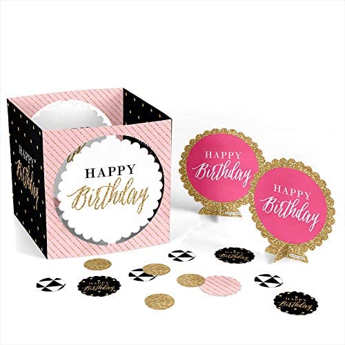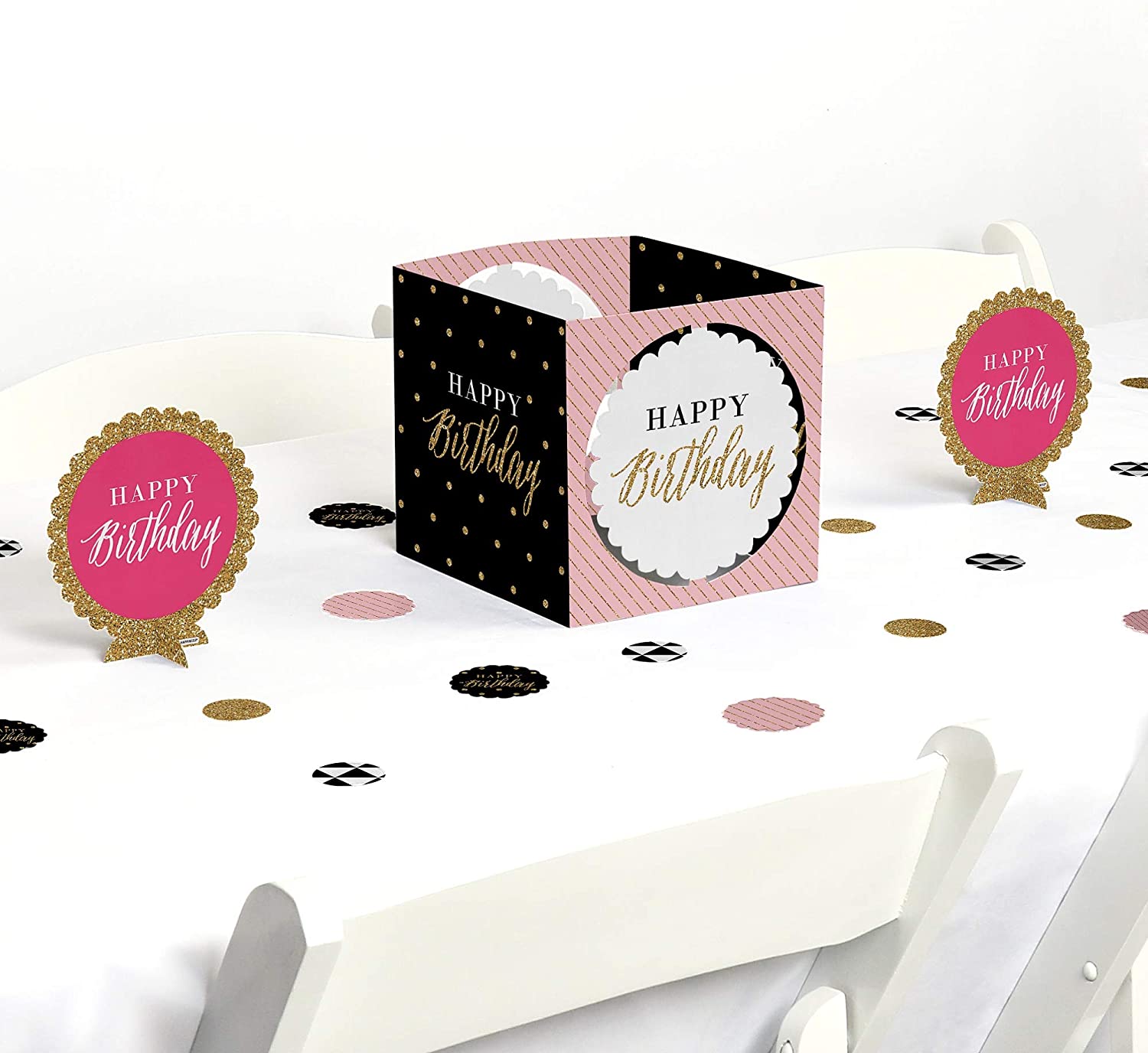 Big Dot of Happiness Chic Happy Birthday – Pink, Black and Gold – Birthday Party Centerpiece & Table Decoration Kit