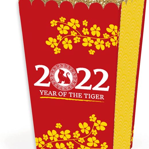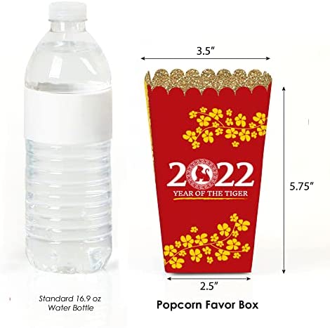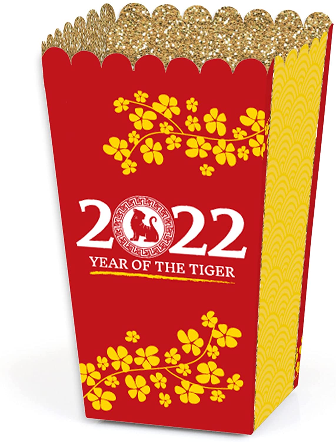 Big Dot of Happiness Chinese New Year – 2022 Year of the Tiger Favor Popcorn Treat Boxes – Set of 12