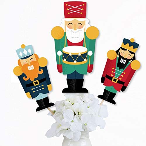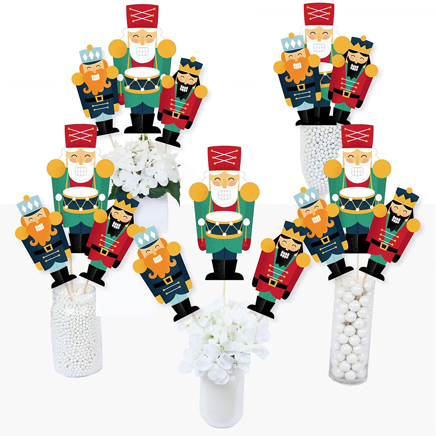 Big Dot of Happiness Christmas Nutcracker – Holiday Party Centerpiece Sticks – Table Toppers – Set of 15