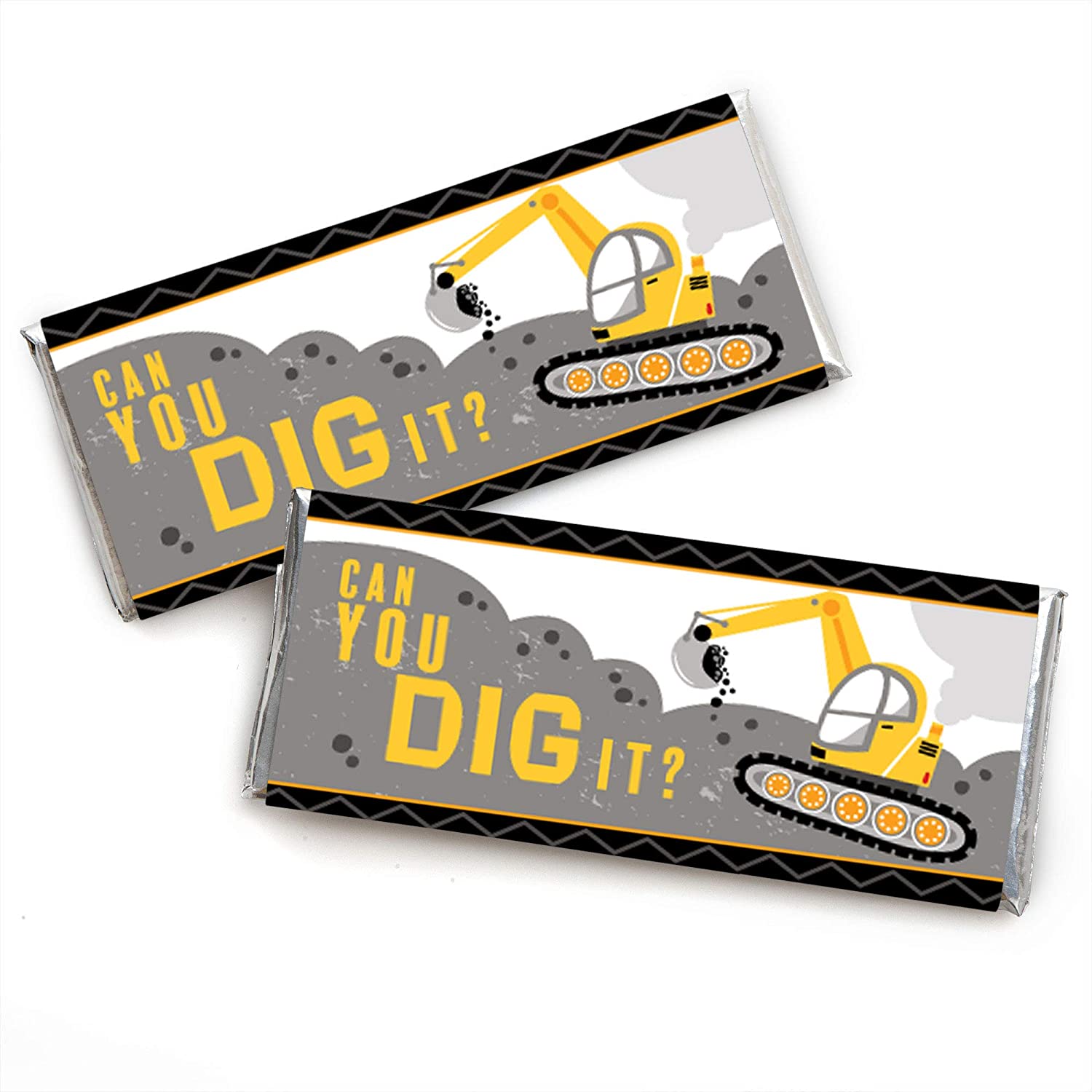 Big Dot of Happiness Dig It – Construction Party Zone – Candy Bar Wrapper Baby Shower or Birthday Party Favors – Set of 24