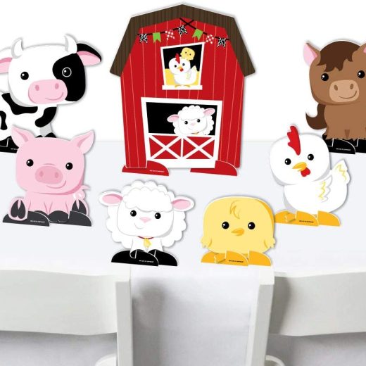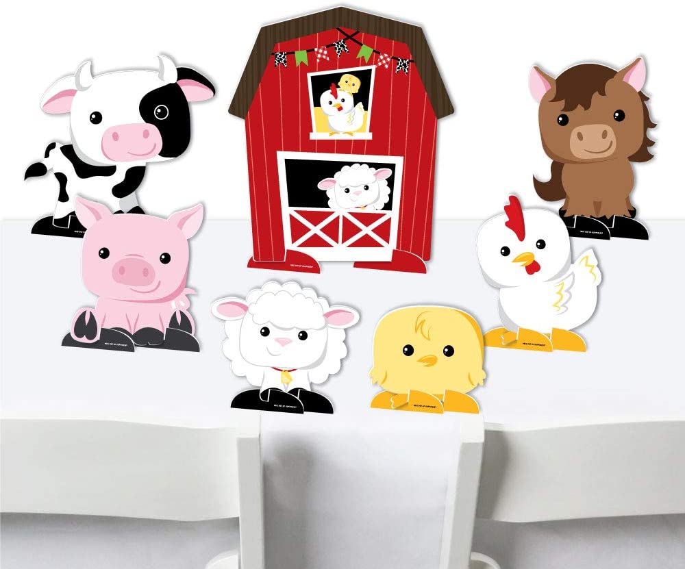 Big Dot of Happiness Farm Animals – Barnyard Baby Shower or Birthday Party Centerpiece Table Decorations – Tabletop Standups – 7 Pieces