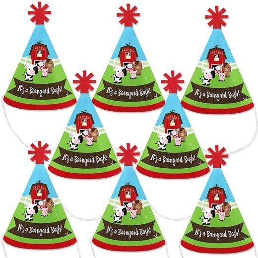 Big Dot of Happiness Farm Animals – Mini Cone Baby Shower or Birthday Party Hats – Small Little Party Hats – Set of 8