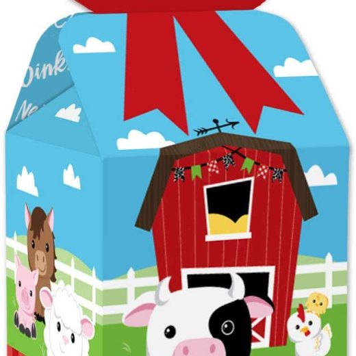 Bow Boxes INCLUDE: 12 Farm Animals-themed square favor gift boxes. Each box SIZE measures 3.5 inches length x 3.5 inches width x 7 inches height. Bow boxes are ideal for small gifts and treats that are under 3.5 inches tall (height for storing items in closed box). When assembled and closed, each box creates a 3D paper bow-shaped top with a square bottom. CUTE GIFT BOXES: This small, closed favor box can be filled with homemade treats (fun cupcake box), party trinkets, or thank you gifts. At the party, have each guest fill their Farm Animals bow box with snacks from a candy buffet or use as a party loot box. Guests will have fun guessing what surprise each favor gift box contains. PREMIUM PARTY SUPPLY: Bow boxes are professionally printed and double-sided on heavy-duty cardstock paper, with a photo-like shine. They are hand-folded, individually inspected, and then carefully packaged. EASY ASSEMBLY: Farm Animals bow boxes will arrive flat. Each bow box has crease lines and numbered tabs for easy folding. Finish the DIY assembly by interlocking top of box to create a three-dimensional bow. Packaging will include assembly instructions. MADE IN THE USA: Farm Animals Baby Shower or Birthday Party bow boxes are designed and manufactured at our Wisconsin facility using materials that are Made in the USA.