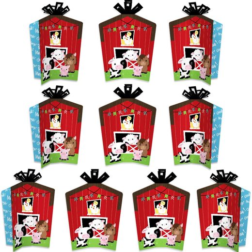 Big Dot of Happiness Farm Animals – Table Decorations – Barnyard Baby Shower or Birthday Party Fold and Flare Centerpieces – 10 Count