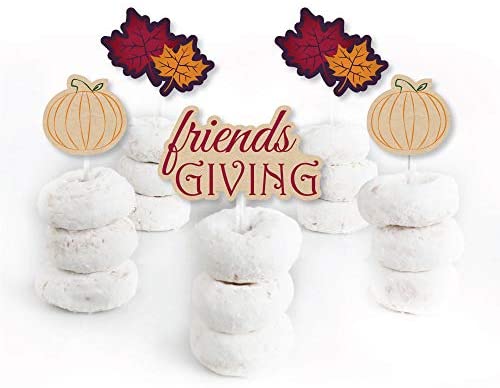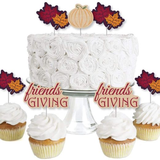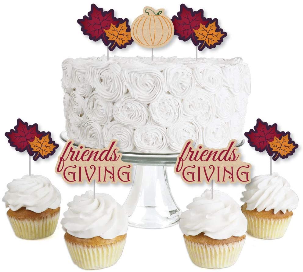 Big Dot of Happiness Friends Thanksgiving Feast – Dessert Cupcake Toppers – Friendsgiving Clear Treat Picks – Set of 24