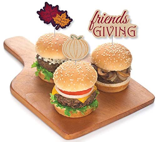 Friends Thanksgiving Feast Dessert Cupcake Toppers INCLUDES 24 clear treat picks, 24 shaped paper cut outs and stickers for easy assembly. DIY Friends Thanksgiving Feast cupcake supplies are perfect for a Friendsgiving party. Plastic clear treat pick SIZE 3.5 inches tall with the completed height of the Friends Thanksgiving Feast Dessert Cupcake Topper depending on where the plastic pick is attached to the shaped paper cut out. Cupcake toppers are perfect for standard cupcakes and can also be added to appetizers and individual servings of other sweet treats such as brownies or donuts, and even used to create small fruit kabobs. EASY PARTY DECORATIONS: Friends Thanksgiving Feast Friendsgiving party picks make it easy to style a Thanksgiving theme party. Create impressive cupcake towers with decorated treats placed on a tiered stand at the candy buffet table, style adorable tables with individual cupcakes at each place setting, or make creative centerpieces using decorated treats and a coordinating treat stand. PREMIUM PARTY SUPPLIES: Clear treat picks are made of food-grade plastic and packaged in a food-safe environment. The Friends Thanksgiving Feast paper cut out toppers are professionally printed on heavy-duty cardstock paper with themed art on one side and a coordinating pattern on the back. Cut outs will quickly attach to the clear dessert pick and then easily insert into your party appetizers or desserts. EASY ASSEMBLY INSTRUCTIONS INCLUDED: Clear treat picks and Friends Thanksgiving Feast shaped cutouts will ship with easy assembly instructions to create unique dessert cupcake toppers.