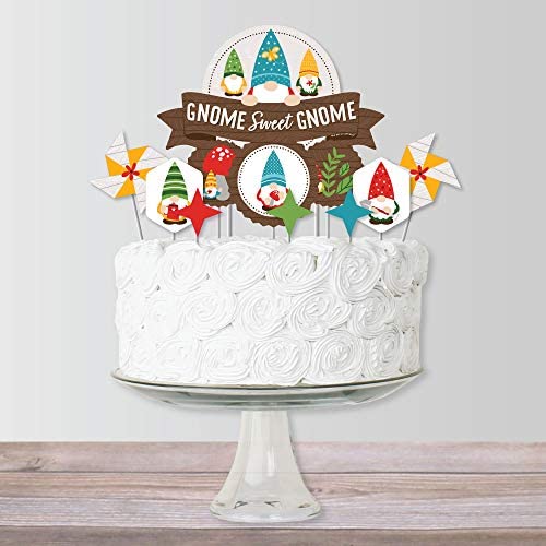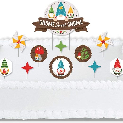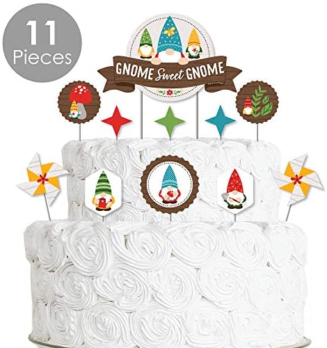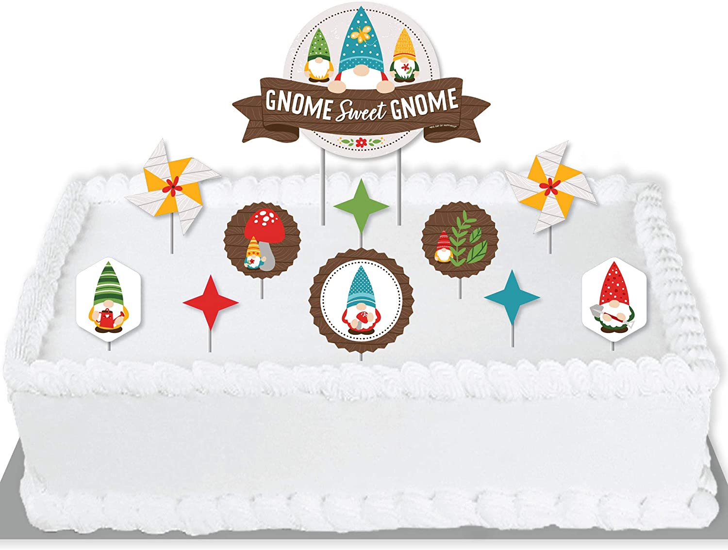 Big Dot of Happiness Garden Gnomes – Forest Gnome Party Cake Decorating Kit – Gnome Sweet Gnome Cake Topper Set – 11 Pieces