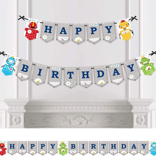 Big Dot of Happiness Gear Up Robots – Birthday Party Bunting Banner – Party Decorations – Happy Birthday
