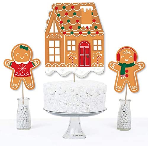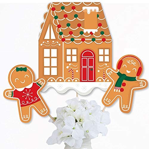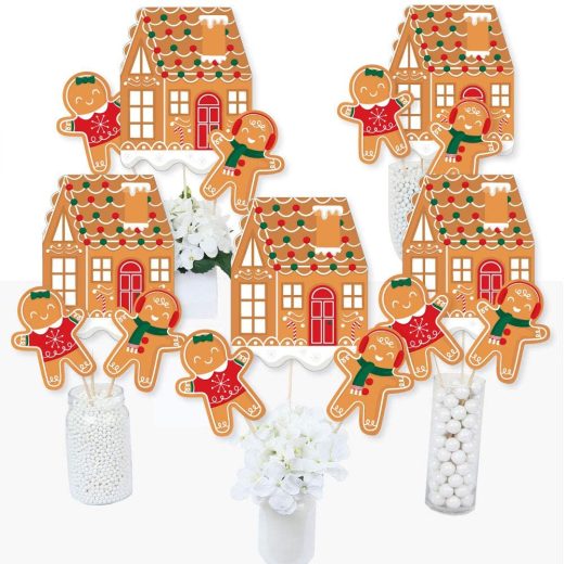 Big Dot of Happiness Gingerbread Christmas – Gingerbread Man Holiday Party Centerpiece Sticks – Table Toppers – Set of 15