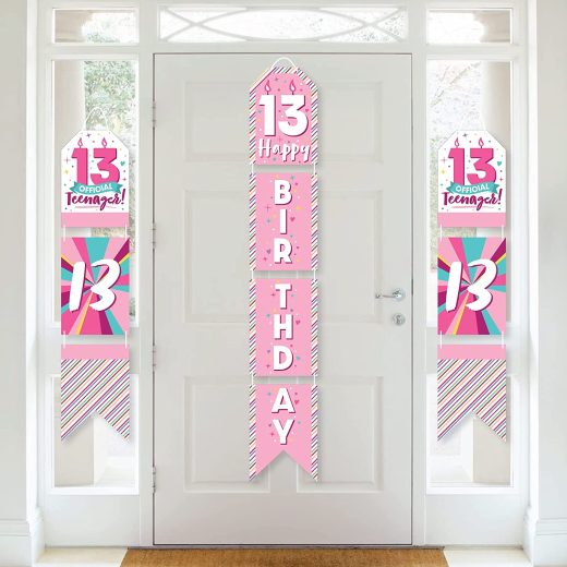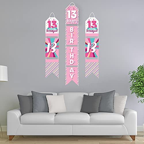 Big Dot of Happiness Girl 13th Birthday – Hanging Vertical Paper Door Banners – Official Teenager Birthday Party Wall Decoration Kit – Indoor Door Decor