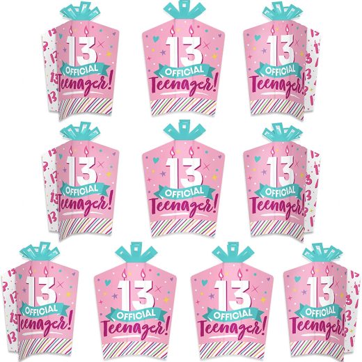 Big Dot of Happiness Girl 13th Birthday – Table Decorations – Official Teenager Birthday Party Fold and Flare Centerpieces – 10 Count