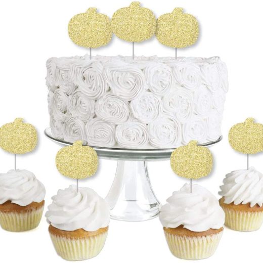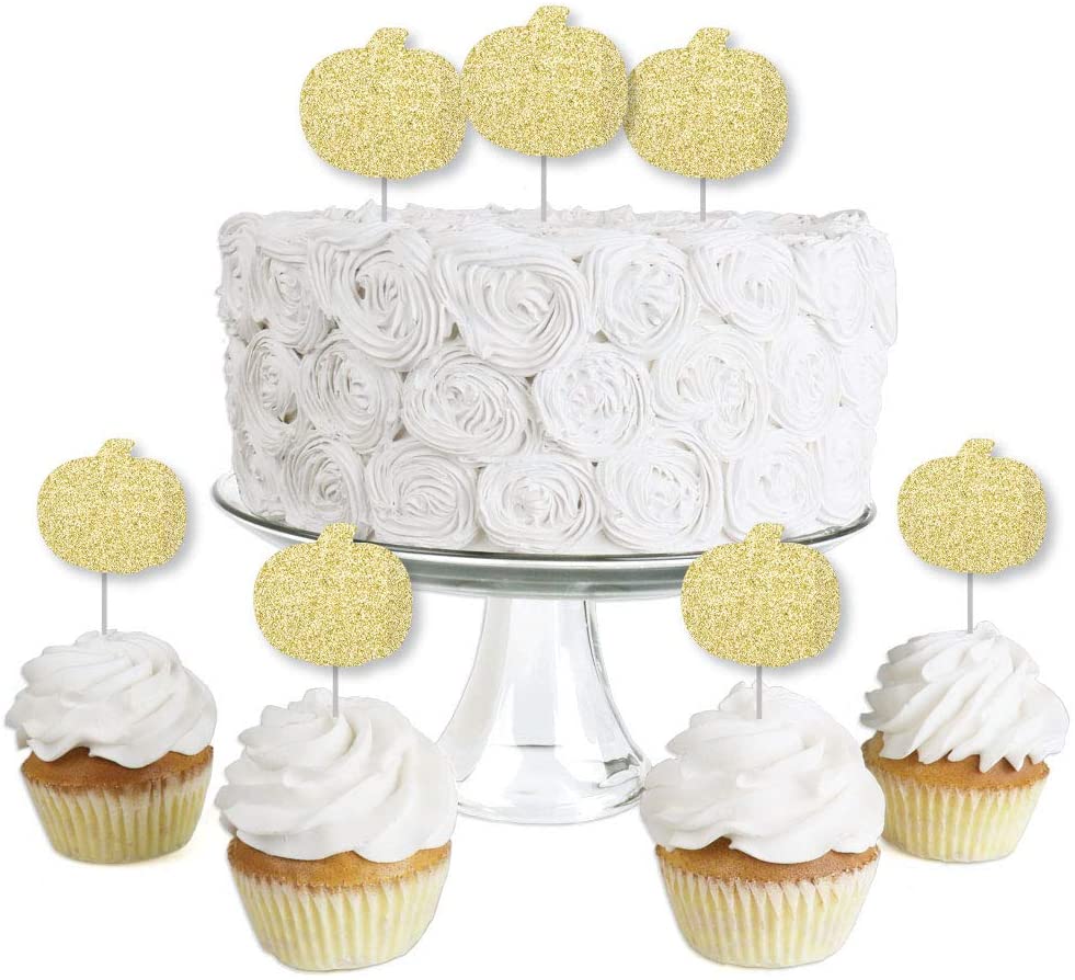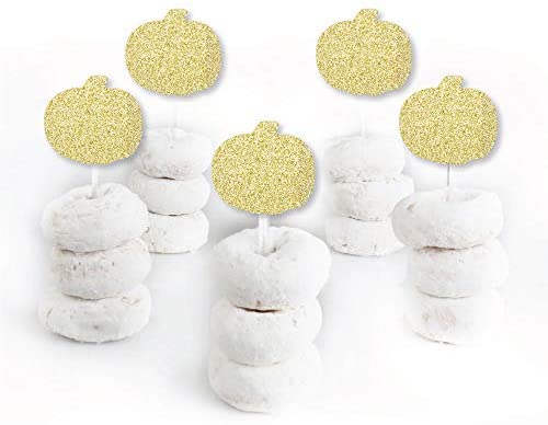 Big Dot of Happiness Gold Glitter Pumpkin – No-Mess Real Gold Glitter Dessert Cupcake Toppers – Fall & Thanksgiving Party Clear Treat Picks – Set of 24