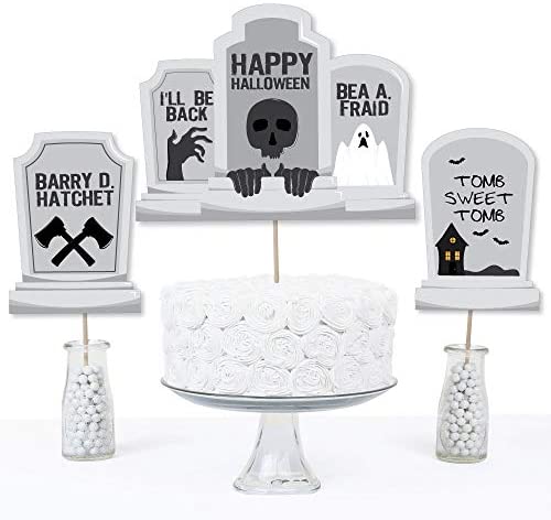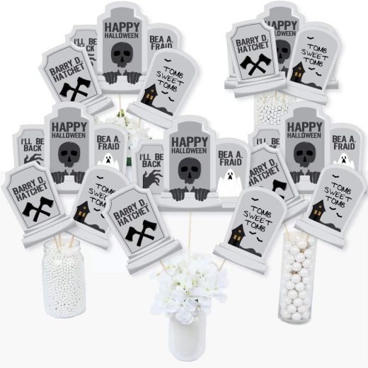Big Dot of Happiness Graveyard Tombstones – Halloween Party Centerpiece Sticks – Table Toppers – Set of 15