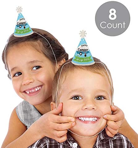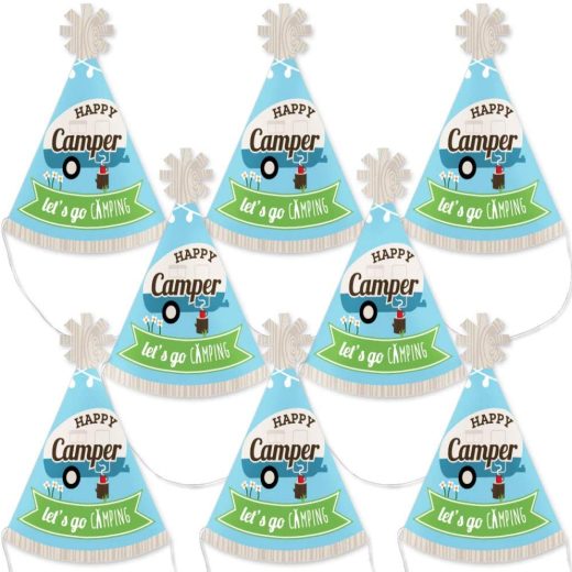 Big Dot of Happiness Happy Camper – Mini Cone Camping Baby Shower or Birthday Party Hats – Small Little Party Hats – Set of 8
