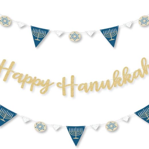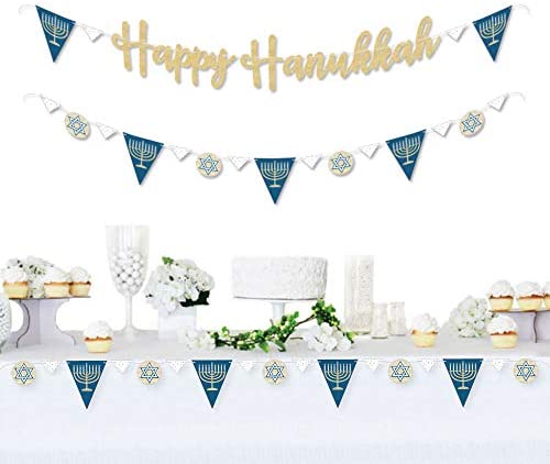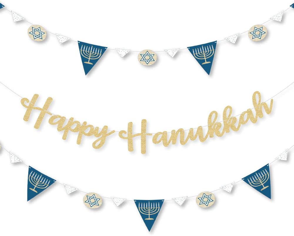 Big Dot of Happiness Happy Hanukkah – Chanukah Letter Banner Decoration – 36 Banner Cutouts and No-Mess Real Gold Glitter Happy Hanukkah Banner Letters