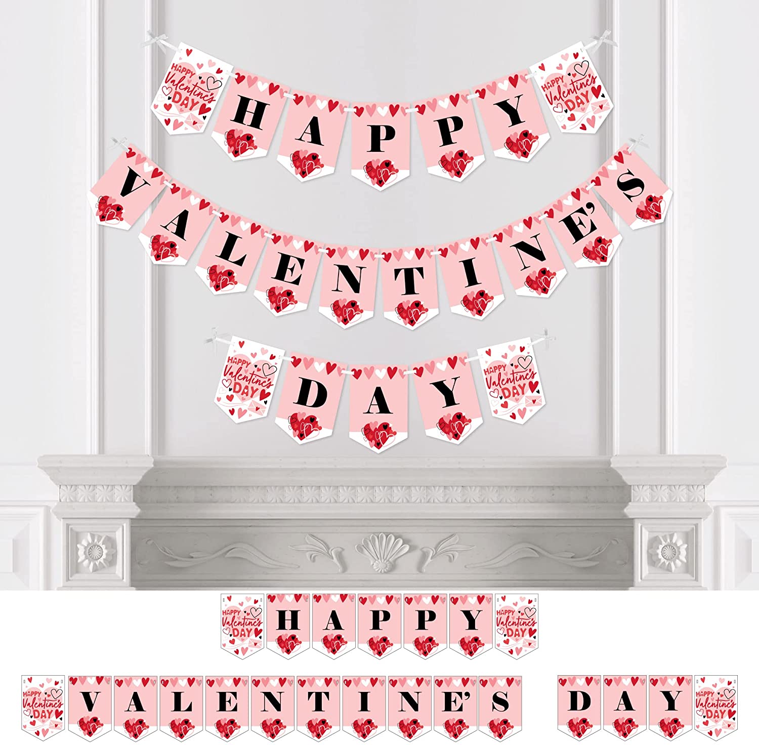 Big Dot of Happiness Happy Valentineu2019s Day – Valentine Hearts Party Bunting Banner – Party Decorations – Happy Valentines Day