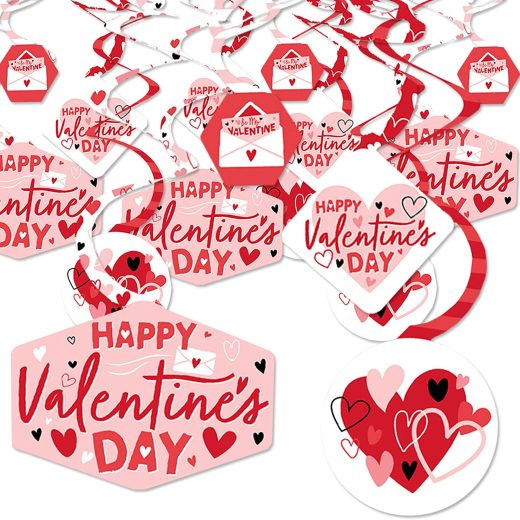 Big Dot of Happiness Happy Valentineu2019s Day – Valentine Hearts Party Hanging Decor – Party Decoration Swirls – Set of 40