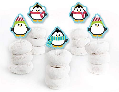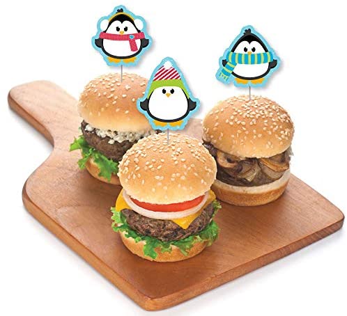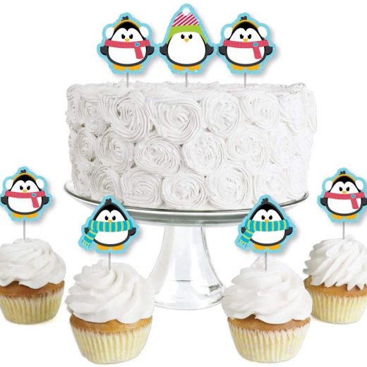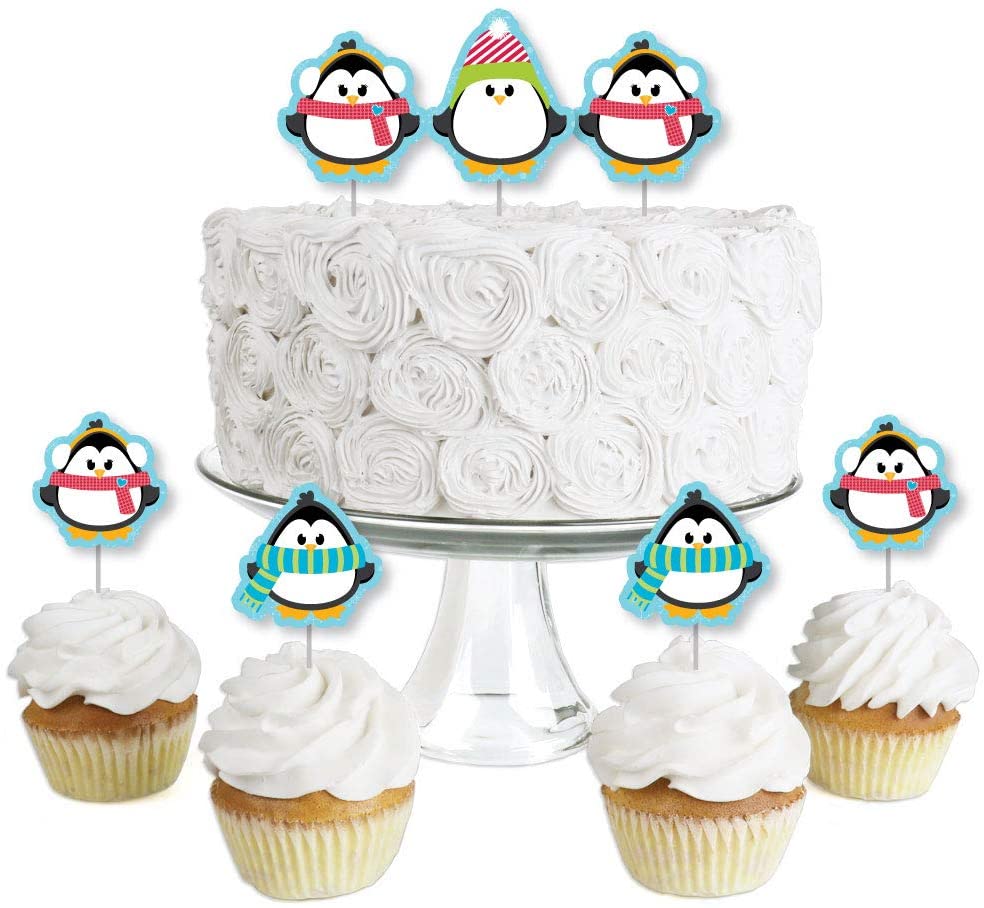 Big Dot of Happiness Holly Jolly Penguin – Dessert Cupcake Toppers – Holiday and Christmas Party Clear Treat Picks – Set of 24