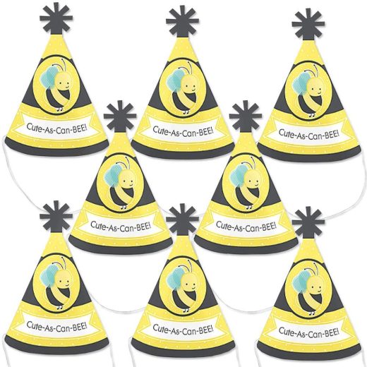 Big Dot of Happiness Honey Bee – Mini Cone Baby Shower or Birthday Party Hats – Small Little Party Hats – Set of 8