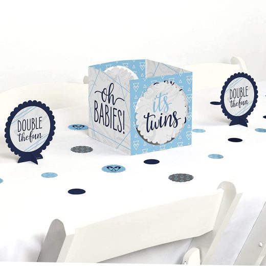 It’s Twin Boys – Blue Table Decoration Kit INCLUDES 1 large twins centerpiece, 2 scalloped centerpieces, 12 scalloped table confetti pieces and 24 …