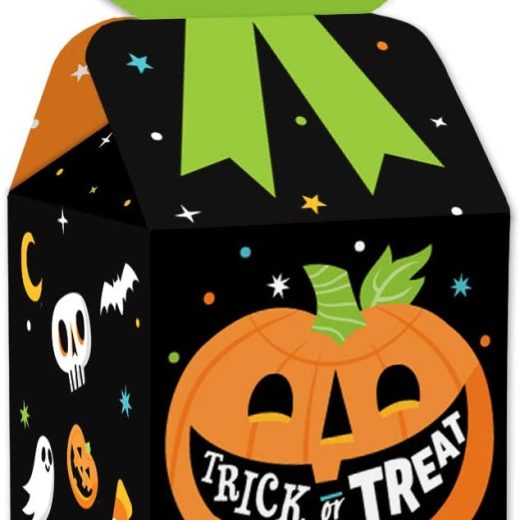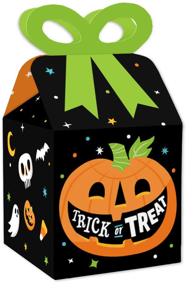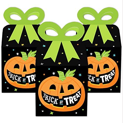 Big Dot of Happiness Jack-O-Lantern Halloween – Square Favor Gift Boxes – Kids Halloween Party Bow Boxes – Set of 12