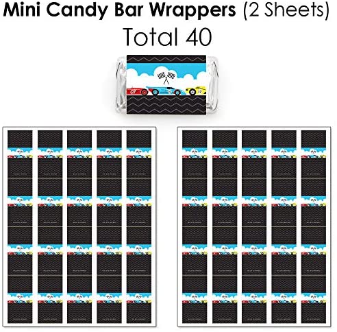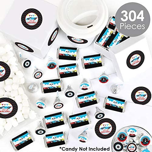 Big Dot of Happiness Letu2019s Go Racing – Racecar – Mini Candy Bar Wrappers, Round Candy Stickers and Circle Stickers – Race Car Birthday Party or Baby Shower Candy Favor Sticker Kit – 304 Pieces